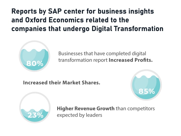 Companies that undergo digital transformation improve efficiency and profitability. Below we are mentioning some of the reports by SAP center for Business Insights and Oxford Economics.