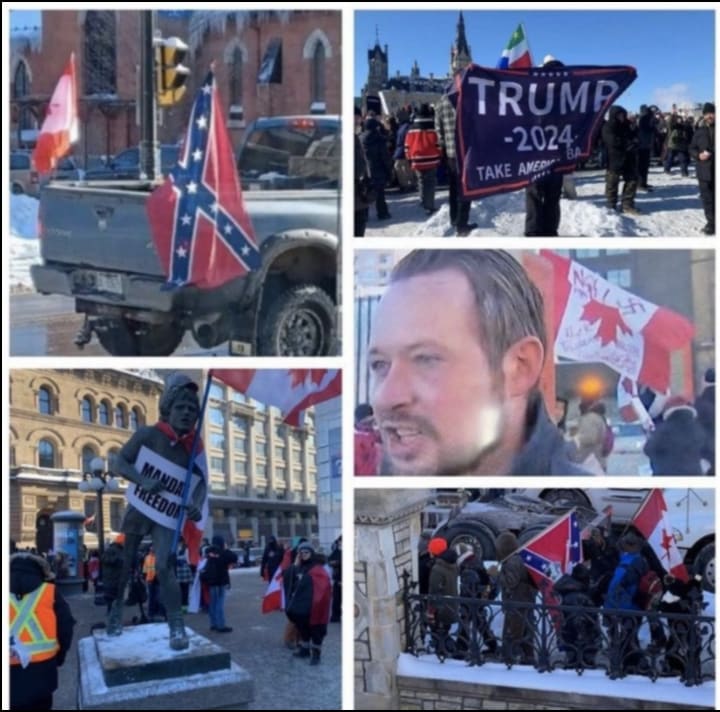Benjamin Ditcher, the third organizer has little to no information about his affiliation to truckers, he is a failed Conservative Party and People’s Party candidate and has been linked to an anti-Muslim conspiracy page. In a conversation on Twitter, however, he was asked about the waving of the swastika and the confederate flag. He claimed that the swastika was “a false flag operation carried out by the federal government”; but he did not criticize the presence of the confederate flag. He removes his responsibility of keeping the protest peaceful by saying that he is “not going to police people’s ideas,” he even adds that displaying the Confederate flag may be a good thing as he “wants to hear unacceptable opinions because [he] wants to challenge them.” While this may have ended as a more positive sentiment, the flags continued to wave for days after, showing no signs of their threats being challenged, or perhaps in the confrontation of these groups, both parties agreed that the flags were appropriate for the protest.