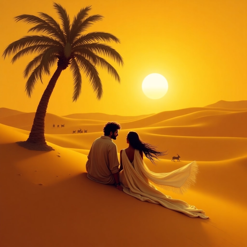 In the heart of the desert where the sun kissed the sand golden and shadows told stories older than time, love once bloomed that not even the winds could forget.
