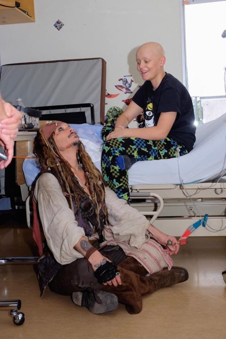 Johnny Depp is one of the most charitable celebrities. His love for kids is what drives him to visit them in the hospital and help make their day brighter. He has made many visits to children's hospitals and often shares pictures on his Instagram account to show his support.