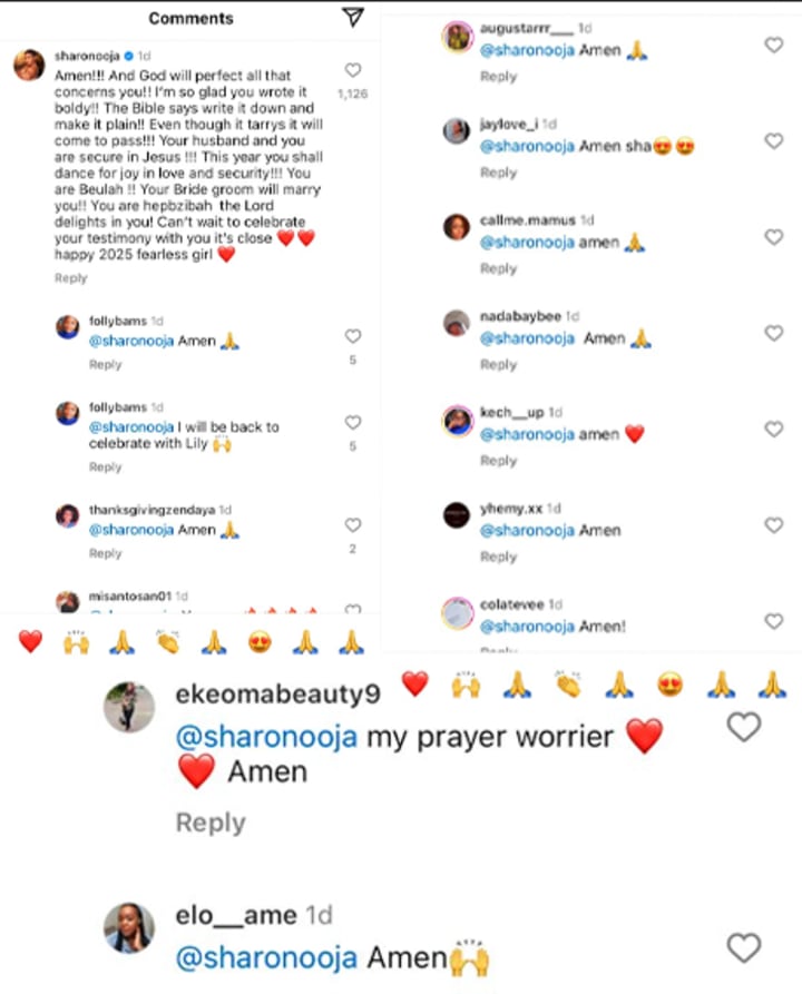 But then, Nollywood actress Sharon Ooja who got married herself last year took to Lilian Afegbai's comment and dropped a prayer in it that has a lot of people tapping into it, and appropriating it for themselves. Here is what Sharon Ooja said, and the prayer that many people have begun also saying for themselves.
