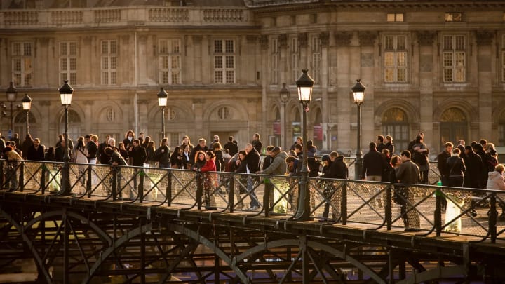 Without being able to say "love", the French have learned to show it instead. "Flattery", "chivalry" and "romantic" are all words that found their way into the English language through Old French. Giving compliments is something of an art form here, coming just as easily from a new lover as the butcher preparing your leg of lamb. Men don't think twice about carrying a woman's suitcase down the metro stairs, and, as for being romantic, it's ingrained in a culture that perfected chocolate, invented Champagne and built the opulent Art Nouveau Pont Alexandre III bridge.