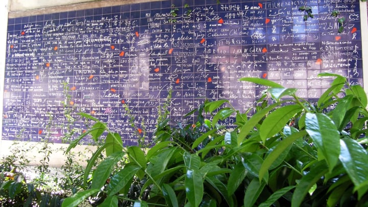 Parigramme Press has published a guidebook on the best places to kiss in Paris, Où s'embrasser à Paris. ELLE Magazine suggests the Medici Fountain in the Luxembourg Gardens or a bench in the tiny Square Jehan-Rictus at Montmartre, facing a wall where "je t'aime" is written in every language. My Little Paris, a popular website for locals, recommends a make-out session at the Montparnasse Cemetery, near Brancusi's sculpture of The Kiss.