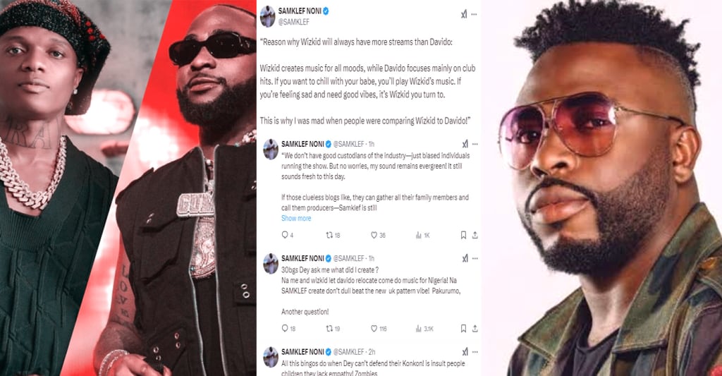 Nigerian music producer Samklef is listing out the reasons why he believes singer Wizkid will always have more streams than Davido, and explaining why he believes "Wizkid is their master." Here's what Samklef had to say.