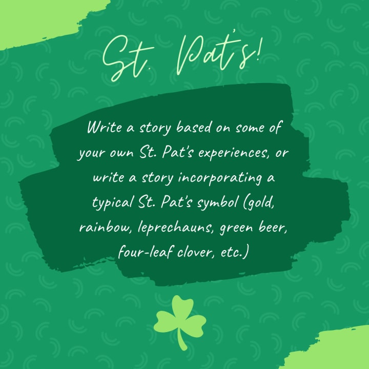 For those who are less familiar with St. Patrick’s Day, write a story that incorporates one of the typical symbols attached to the celebration: green beer, four-leaf clover, rainbows and pots of gold, the colour green, or even leprechauns!