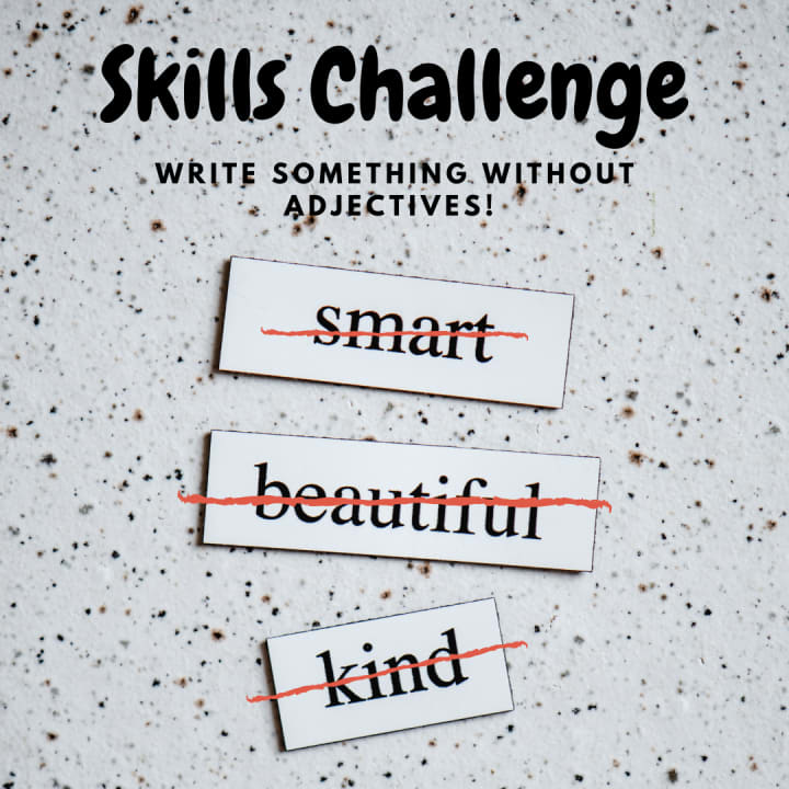 For this week’s skills challenge, I want you to write something without using any adjectives. You can write a poem, a monologue, dialogue, short story, anything – just don’t use adjectives. Instead, use comparisons and metaphors to describe people, objects, and places. This writing challenge will force you to be more expressive in your descriptions of actions.