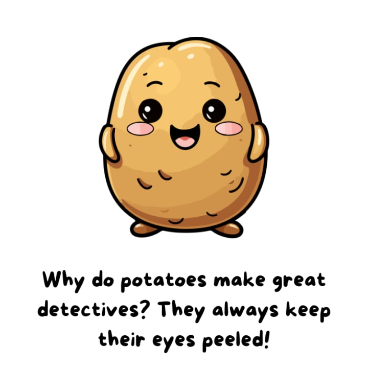 - Why do potatoes make great detectives? They always keep their eyes peeled!