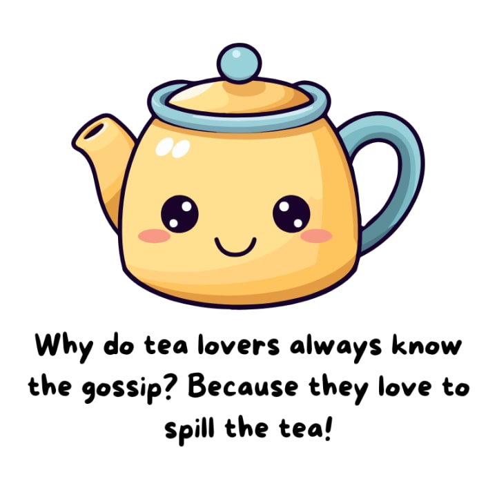 - Why do tea lovers always know the gossip? Because they love to spill the tea!