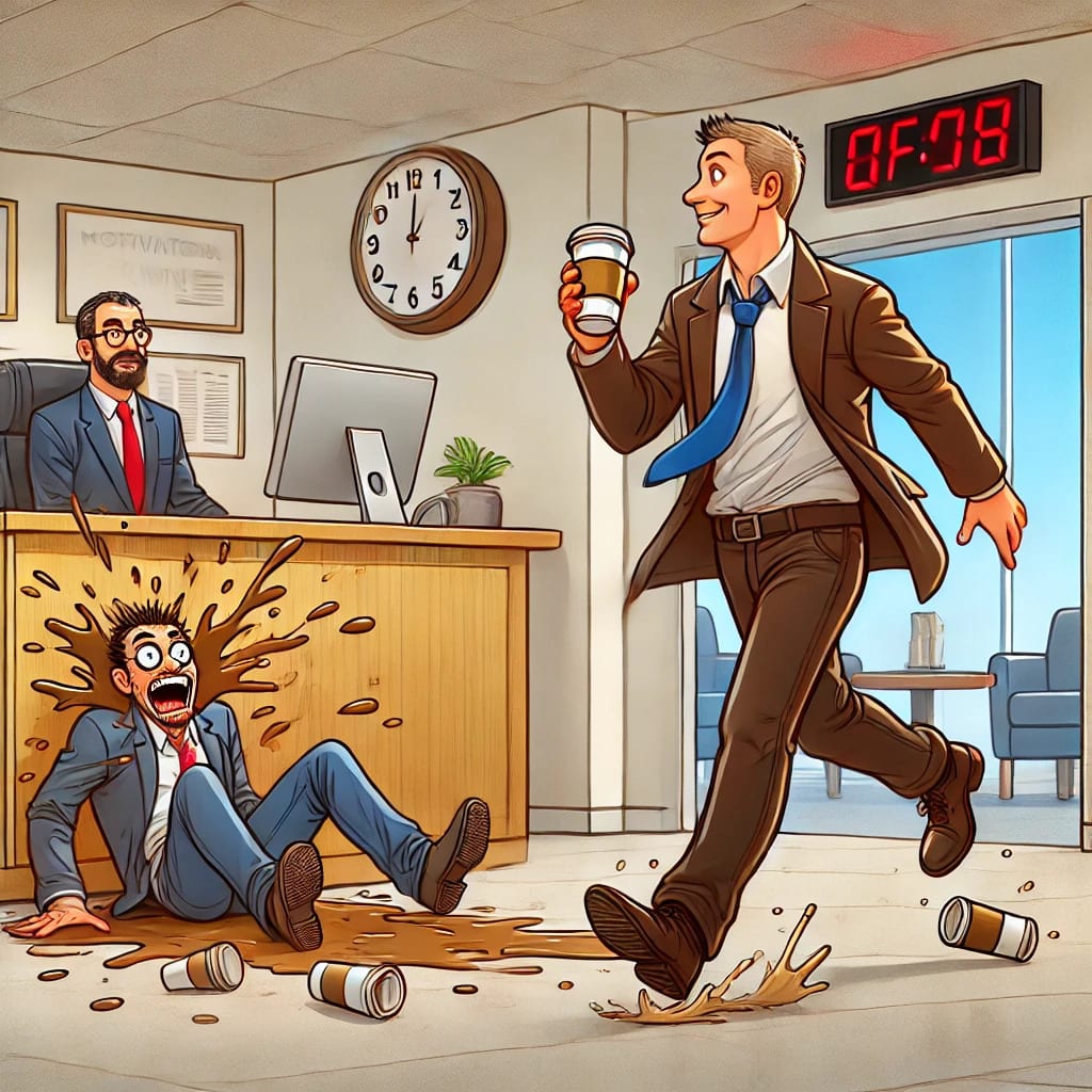 Employee: It's a high-stress dash to the office, with coffee spills, crowded elevators, and the desperate hope that nobody notices you walk in one minute late.
