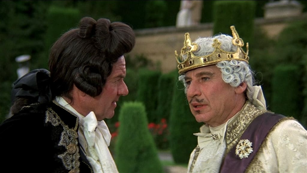 Finally, we land in the French Revolution, where Brooks plays Louis XVI as a mustachioed, beauty-marked tyrant who indulges in every vice imaginable. He plays chess with real people as pieces, hosts an orgy on a croquet court, and delights in proclaiming, "It’s good to be the king!" Harvey Korman shines as "Count de Money" (or as he irritably corrects, "De MO-NAY!"), and the absurdity peaks with a plot to swap the king with a look-alike servant, the "piss garçon," to escape the guillotine.