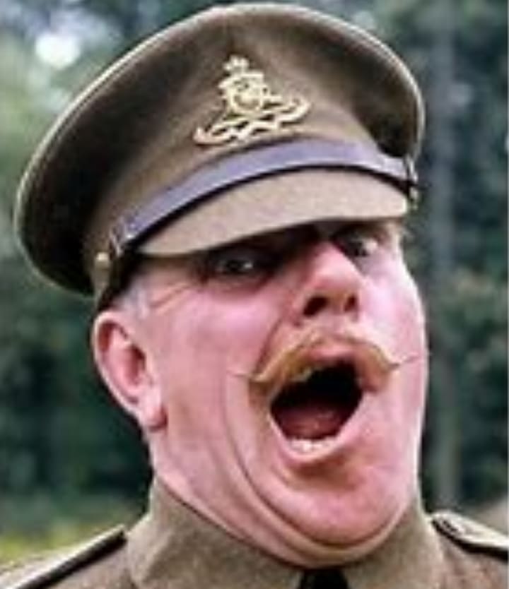 Private Godfrey: "Oh heavens. Does he really need to shout so loudly?"