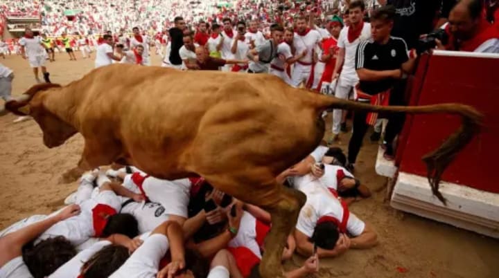 Announcer: We now go over to the post-match press conference in Pamplona, Spain where the American team, the bulls of the Portland Gores are live. They’ve just finished their special international game at the famous Bull Run in the city. They’re the first foreign team to have taken part.