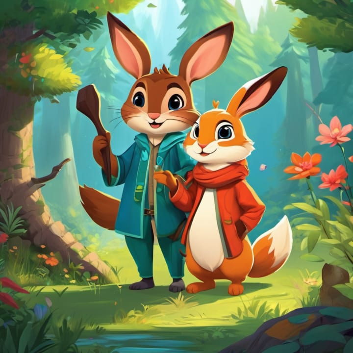 day, while exploring a magical part of the forest, Khargosh and Kachhua stumbled upon a mysterious cave. They hesitated for a moment but soon gathered the courage to enter. Much to their surprise, inside the cave was a hidden treasure chest filled with colorful paints, brushes, and art supplies! With a spark of inspiration, Khargosh had an incredible idea. He and Kachhua decided to create a beautiful mural within the cave, painting all their animal friends, capturing their vibrant personalities and unique qualities. Khargosh's imagination ran wild, and Kachhua contributed his slow, steady strokes, making the mural even more magical