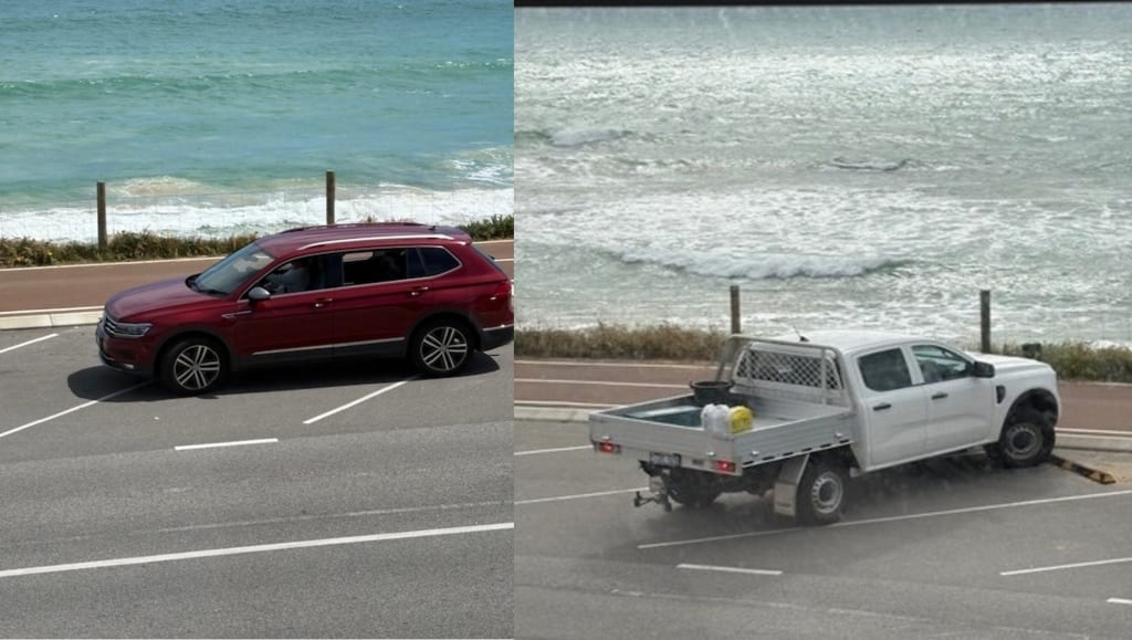 He paused beside his car, seemingly measuring the distance left in the only vacant spot. He was not happy. I sat, watching to see what would happen. His mate had to park up the street, on the next section of curbing. That’s a tradie's worst nightmare: walking a couple of meters to the job.