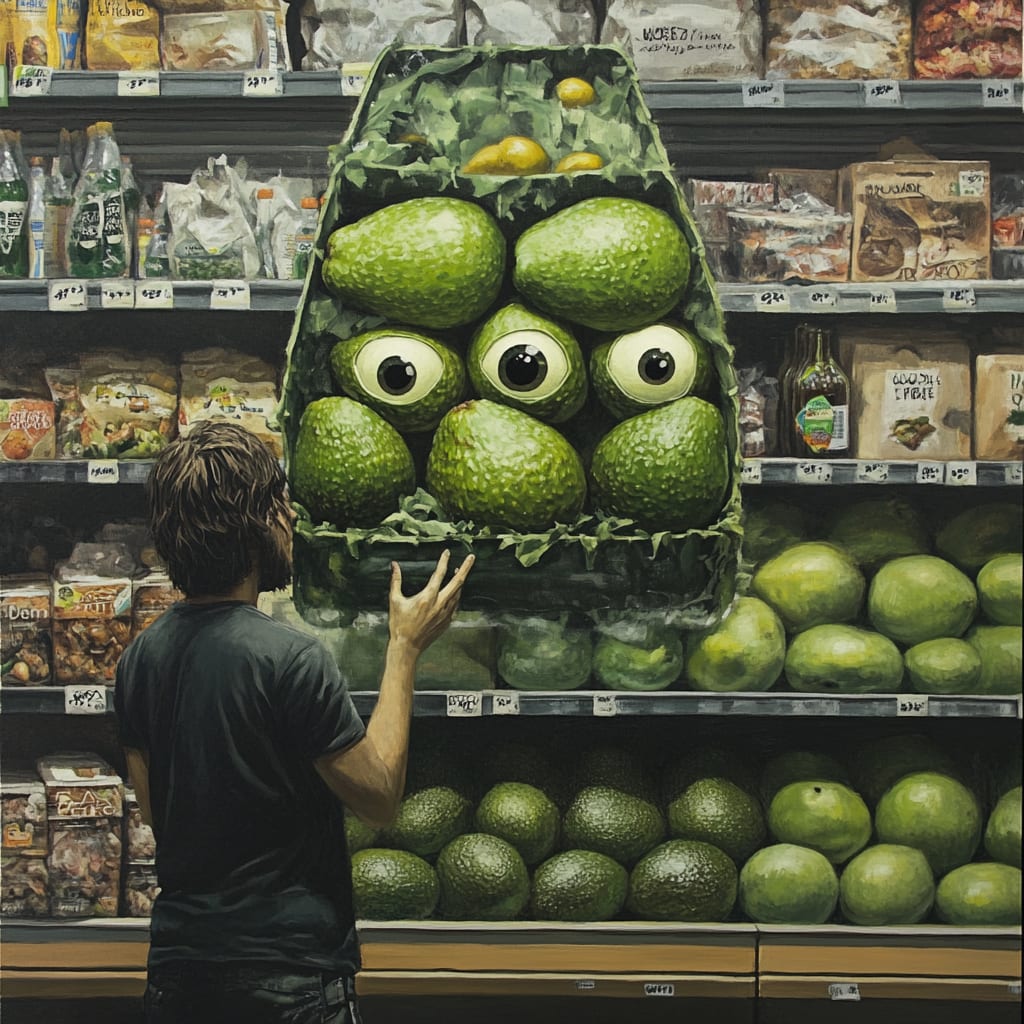 The grocery store looked normal when he entered—fluorescent lights flickering, muzak playing a mind-numbing rendition of Don’t Stop Believin’, and aisles filled with unsuspecting customers, blissfully unaware of the impending chaos. Greg walked confidently to the produce section, grabbed a plastic bag, and approached the avocados. That’s when things took a turn.