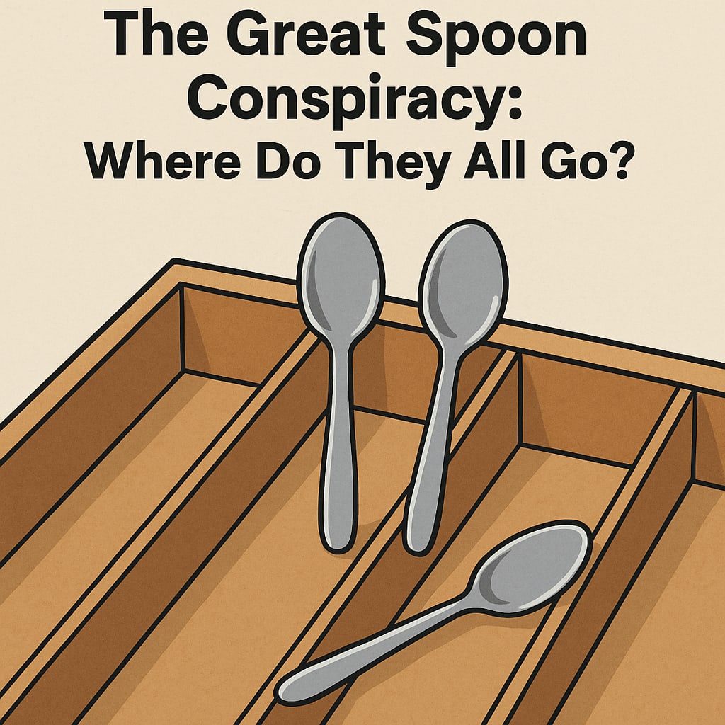 The spoons? Probably not gone, just somewhere in my room, in an unwashed mug or under a pile of “definitely clean” laundry that smells suspiciously like tacos.