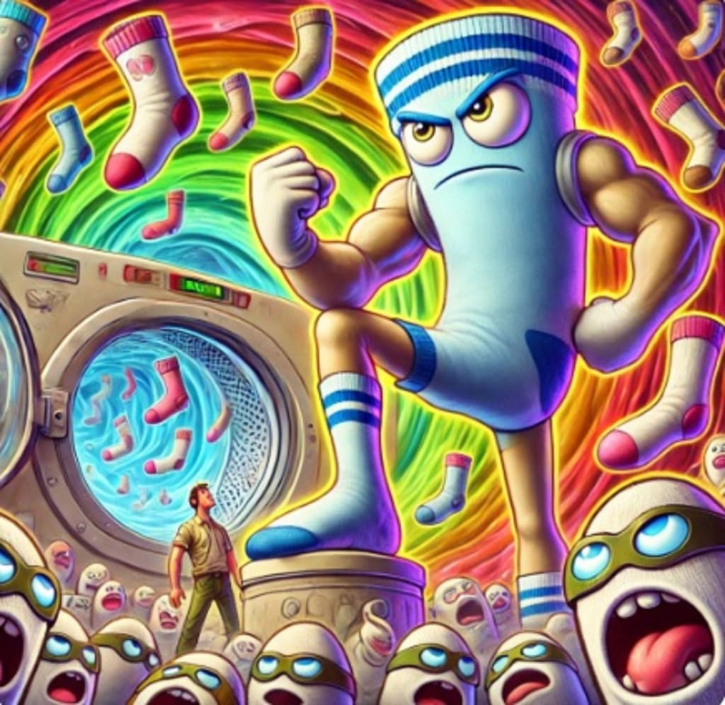 “No MORE will the Sock Masters enslave us to the feet of humans! No LONGER will they force us to endure a boring, solid-colour existence, tethered to another! Chaos and individuality FOR ALL!” The passionate knee-high sock shouted as he thrust his aglet sceptre in the air.