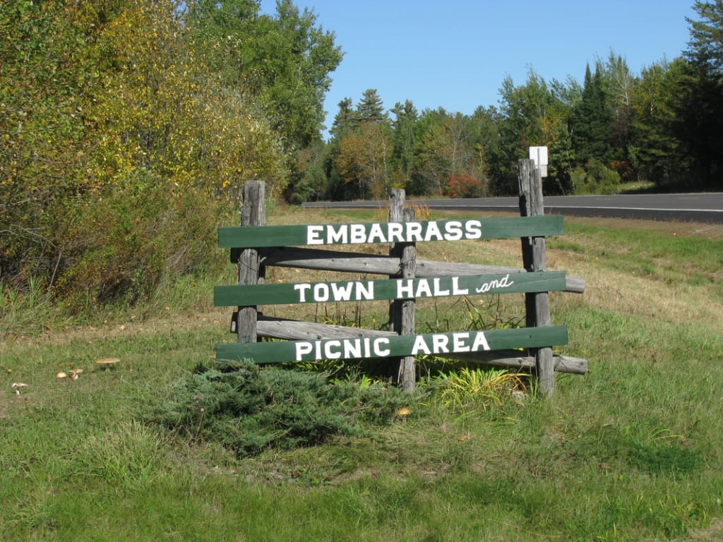 Known for its frigid temperatures, the unincorporated community’s name stems for the French word embarras, meaning “to hinder with obstacles or difficulties”. It was referred to by French fur traders who found the narrow, shallow river that flows through the valley difficult to navigate.