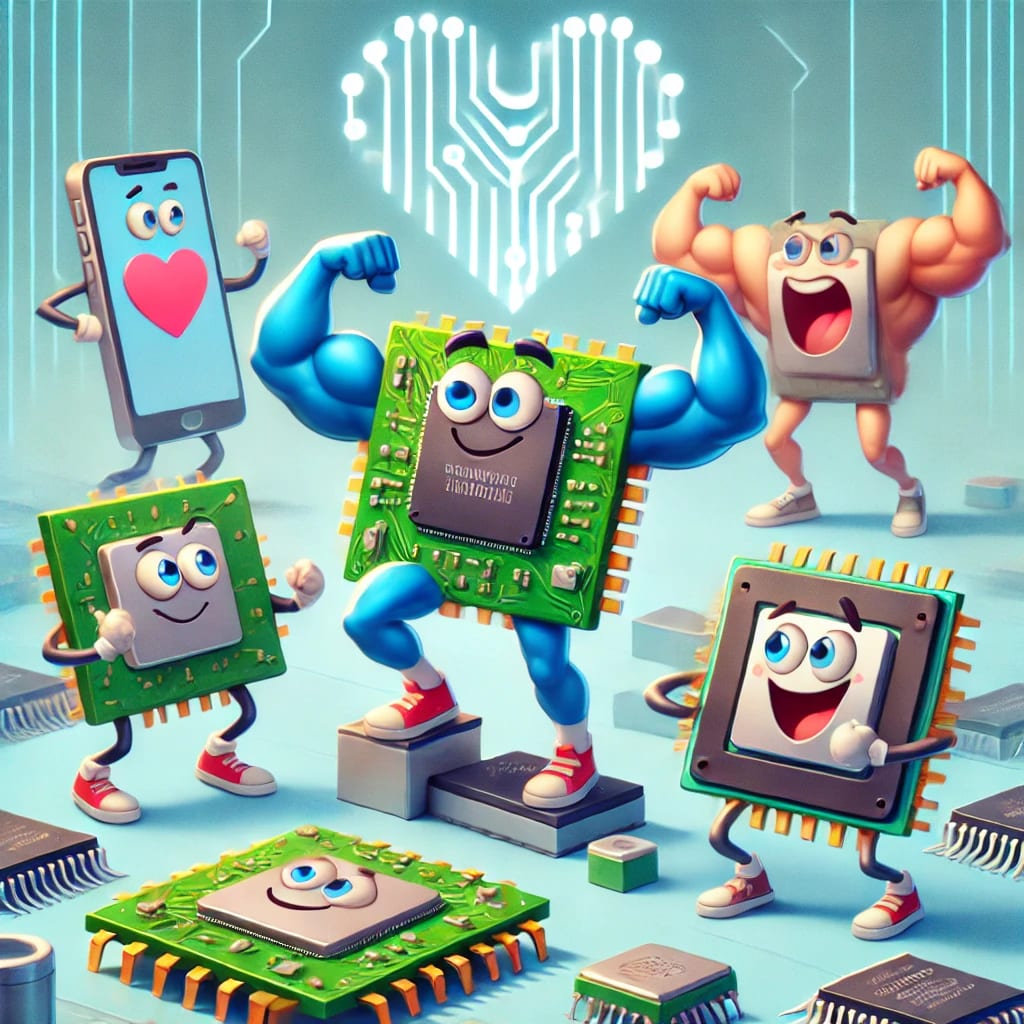 "Nice to meet you! I'm the heart of your smartphone, the chip. Every time you're scrolling, I'm working hard!" The chip suddenly starts introducing itself. It might proudly declare that it’s the most important part of your device. Every time you browse the web, the chip processes data with great pride. "I want to rest, but... I’ll work for you!" it might silently shout inside.