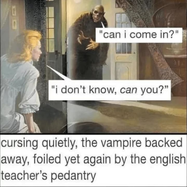 English can be exasperating and brilliant for its readers and users, but Vampires have been the subject of many books, plays, and films for our entertainment. As with all horror creatures I do wander how people would be if they were taken by a real one.