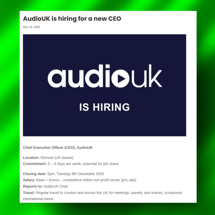 AudioUK, the UK trade body representing the audio and podcast industry and organizers of the (APAs), searched for a new Chief Executive Officer. This was one of the most unique podcasting opportunities of 2025—a chance to lead a national trade organization shaping policy, running major awards programs, and advocating for the industry.