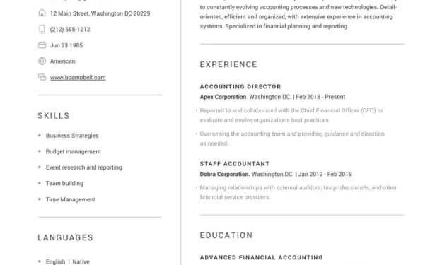 Experience & Skills: Detail your work experience, including key responsibilities and accomplishments. Use quantifiable metrics where possible to show the impact you've made. Additionally, list relevant skills to make your profile searchable by recruiters.