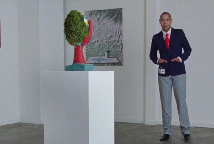 The main character Marla works at a museum in security, but can’t resist the urge to touch the exhibits. After finally deciding to break the rules, she enters the tactile space within the artwork—and ends up feeling completely at ease inside the space.