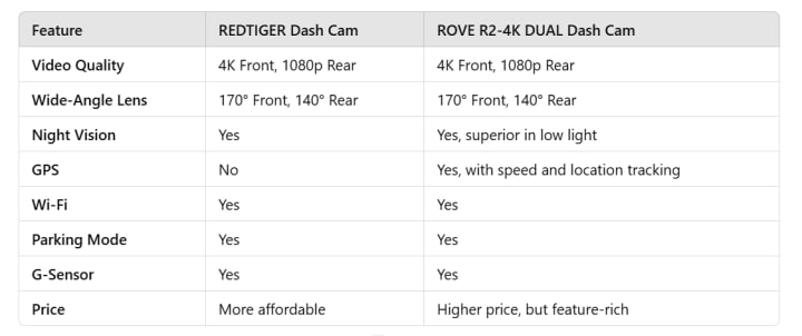 When it comes to driving safety, having a reliable dash cam is more important than ever. Whether you're looking for an extra layer of security on the road or simply want to record your journeys, choosing the right dash cam is essential. Among the top contenders in the market, the REDTIGER Dash Cam Front Rear and the ROVE R2-4K DUAL Dash Cam Front and Rear stand out. In this article, we’ll compare these two models based on their video quality, features, and value to help you make an informed decision.