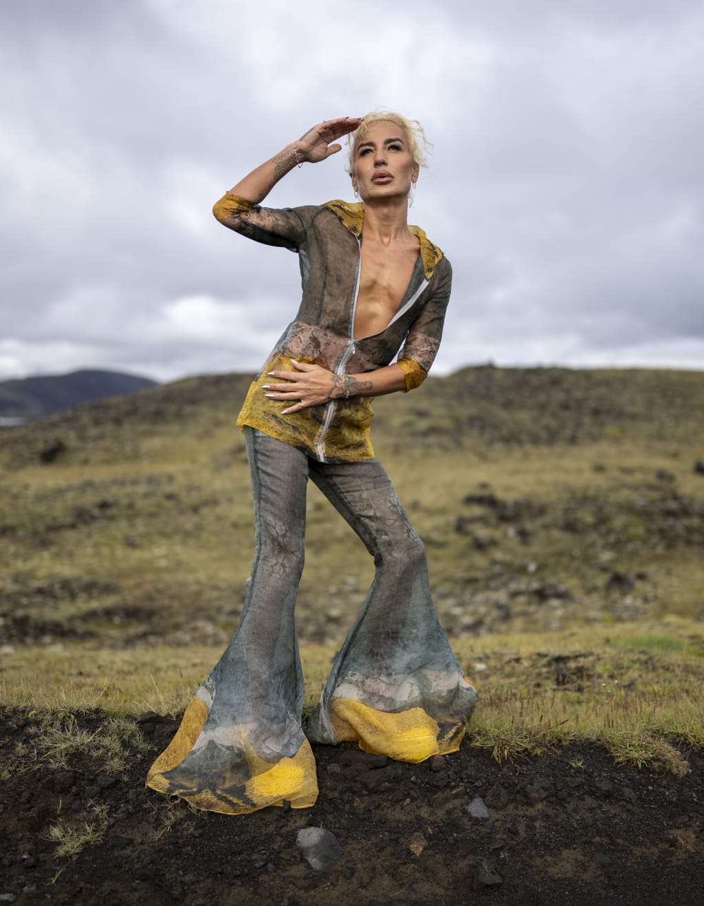 The atmosphere during the Arabesque Boudoir show was electric. “It was a very boutique show, the audience went wild. It was a luxury event,” Ilirjani recounted, photographed by Arun Nevader. “I did a couture walk and turned around to show the entire outfit. It was a success. I was the guest of honor at Iceland Fashion Week. I was so honored. They loved me, I inspired all the models and designers. I am famous now in Iceland.”