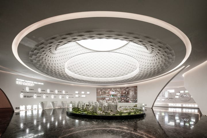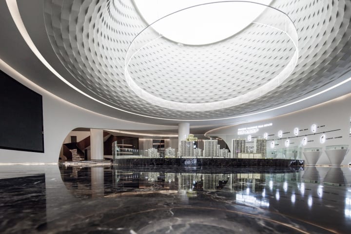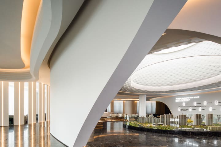 The experiential dynamism and freedom come from the orchestration of space. Smooth curves and folds spread from the center to the periphery, forming indoor landscapes, hydrology, and mountains. The abstract but more poetic sculpture naturally accommodates all activities of people, and the balance between space function and form reflects the intersection of nature and life, looking at each other, strange and varied.