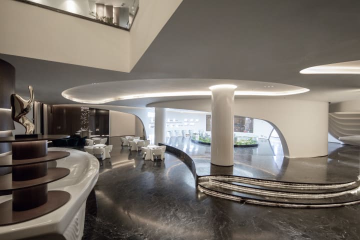 Drawing energy from the creation of the universe and the origin of life, intervening with Eastern curves, the space becomes like nature gently turning indoors. The curves constitute the entire universe within.