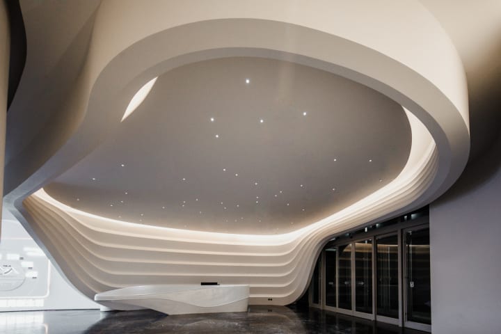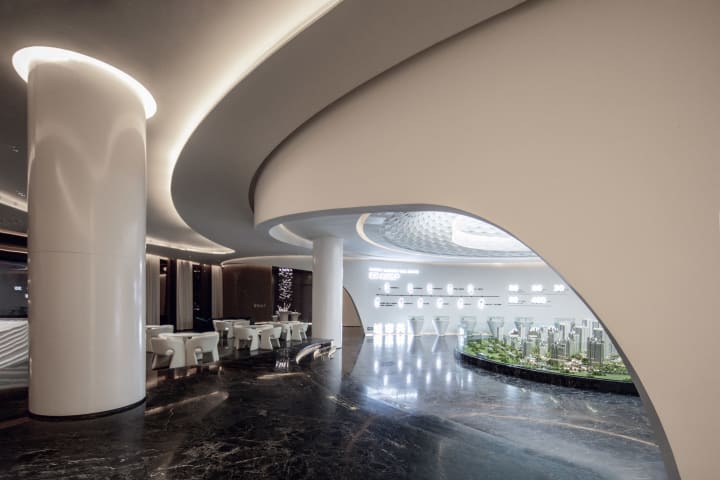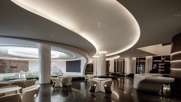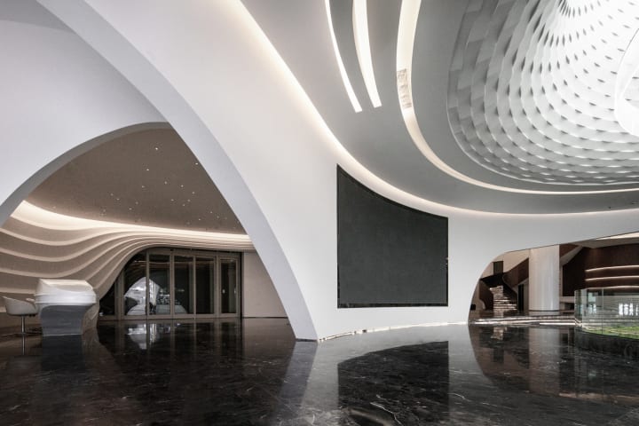 In the designer's concept of Eastern curves, an "infinite" and "natural" beyond Western parametric aesthetics is emphasized — the space built by curves flows like water, disappearing in the distance, but at some moment, it turns into a downpour. Movement is stillness, and an instant is eternity. This kind of infinite and unity of nature and humanity is unique to the East.