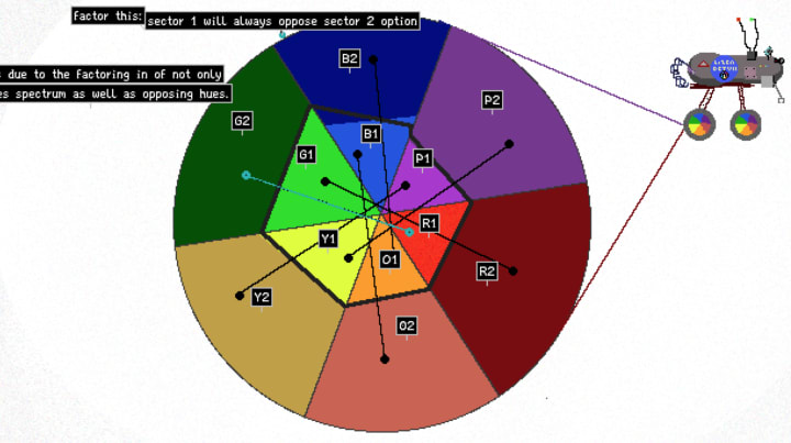 Now that sure was something. Do you ever feel like a Dog With a Blog™? Do you feel tired, or annoyed? Don’t you want to feel better? Eat ROYGBP to solve this all. A better life starts with a better diet. When you balance this color wheel, by selecting the colors eaten of the day, you ensure that a real sister-wheel across the globe doing deep sea rovering is going to have an okay night. In real time, the wheel is ready to fall off, and if you fall off, if you cause a problem by eating too much blood with not enough baby spinach, a spoke will shoot out, and no more red spoke. That’s five spokes remaining and Lizcadet VII is looking awfully wobbly. This is the reality you didn’t realize you’re already signed up for, but now you know, so start acting like it and eat ROYGBP.