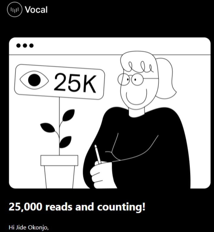 This was three years after my 10 Crazy Nigerian Myths - Part 1 post and when I logged back into Vocal, that story was at about 10,000+ reads.