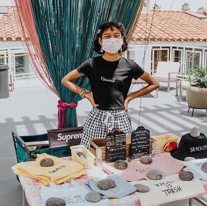 Kumei started her business, Tofu Tees, at eight years old handcrafting apparel and jewelry. She began by selling her designs at events like pop-up shops and things in downtown Las Vegas. Tofu Tees’ company mission is, “To make people laugh/smile while provoking deeper thought about social issues around our community, nation, and planet.” What makes Tofu Tees such inspiration is the message behind the product. With items sporting the lines “Racism is Trash," “Lil’ Feminist," “Social Issues are Not Trends,” and “Smile if you love someone with Autism” it isn’t hard to see why. The message is clear and the platform to talk about issues happening in the world right now is set. Also, the creator of a Zine featuring editions like “Kids Against Racism,” where Kumei interviews other children from the Vegas area about the tough issues of racism and politics. Are you asking yourself why children would bother themselves with such serious issues? The answer is simple, racism shows no mercy to age or gender. Racism and politics inadvertently affect children of all ages. I would argue that part of the problem is people not knowing it is a problem. Children can open people’s minds and hearts in a way no one else can. So to educate them on what is wrong with the world and ways we may be able to fix those things, like spreading love and equality, is an admirably intelligent thing for Kumei to dedicate herself to. With racial injustices and feminist outcries for their rights. It is always moving to see young people educating themselves on the important issues pertaining to the world around them. Also, taking the initiative to educate others. Kumei has gone above and beyond to do just that with the original designs featured in her store. Refreshing takes on the issues of today and how to respond to them. What manifested as a way to get creative with her art and ideas has blossomed into so much more.
