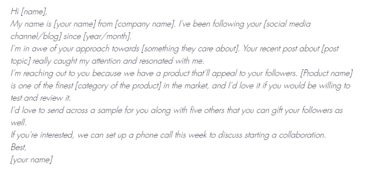 Here’s a template that you can use to reach out to influencers.