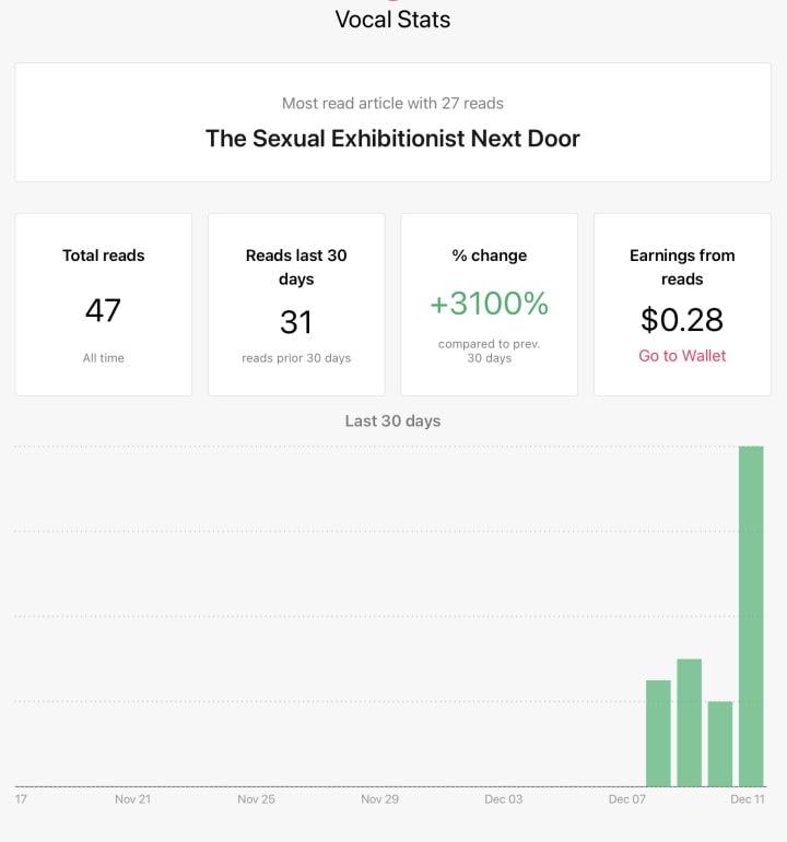They also give you money for views. Yes, views. I began posting on Vocal+ as I wanted to experiment and see if I could make my money back in a month.