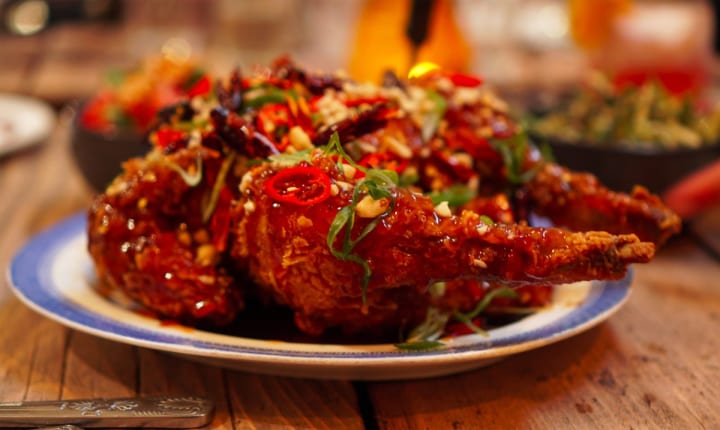 One of the best ways to enjoy Chick'n'Sours' fried chicken is to pair it with some pickled vegetables or kimchi. The acidity from the pickled vegetables cuts through the richness of the fried chicken, providing a refreshing balance. The kimchi also adds a depth of flavor to the dish, with its spicy and tangy taste
