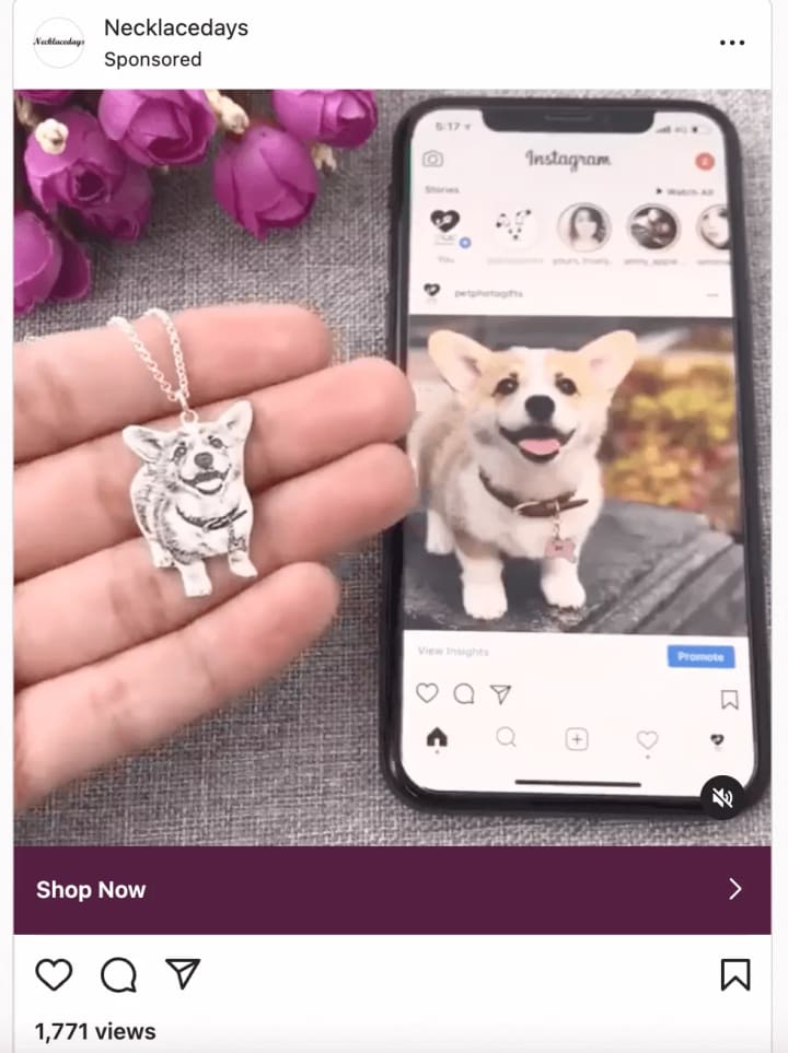 But now, with Instagram ads and Instagram Shopping, you can create clickable links within your posts and Stories, like Necklacedays‘ post in the image below.