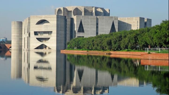 In Sher-e-Bangla Nagar, Dhaka, Bangladesh, there is a famous landmark called the National Parliament House. The structure houses the Jatiya Sangsad, Bangladesh's national parliament, and is the seat of the nation's political authority.