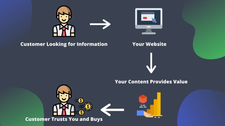 Once you have some trust established, you can have automated systems in place to pitch them products or services. No one wants to be pitched products directly when they visit a website, unless it's Amazon or Ebay. People are going to those sites to shop because there is authority and trust established. With some websites, people need to take the time to trust first and then make a purchasing decision.