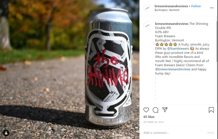 For instance, Brews Views & Reviews is an influencer who reviews beer from different cities in Vermont and creates social media posts about them. Brands can track their reviews to find influencers like him for local influencer marketing.