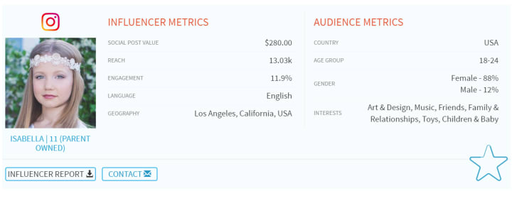 For example, Isabella is a social media influencer in Los Angeles, and she has 19K followers on Instagram. However, her estimated post value is only $280, which is about 1.5 cents per follower.