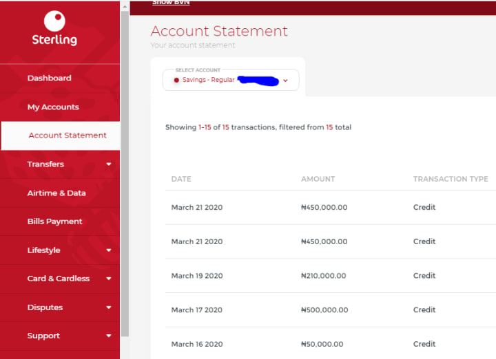 I took a screenshot of my friend's Sterling Bank account statement. Our conversation and the amount of money she makes inspired this post.