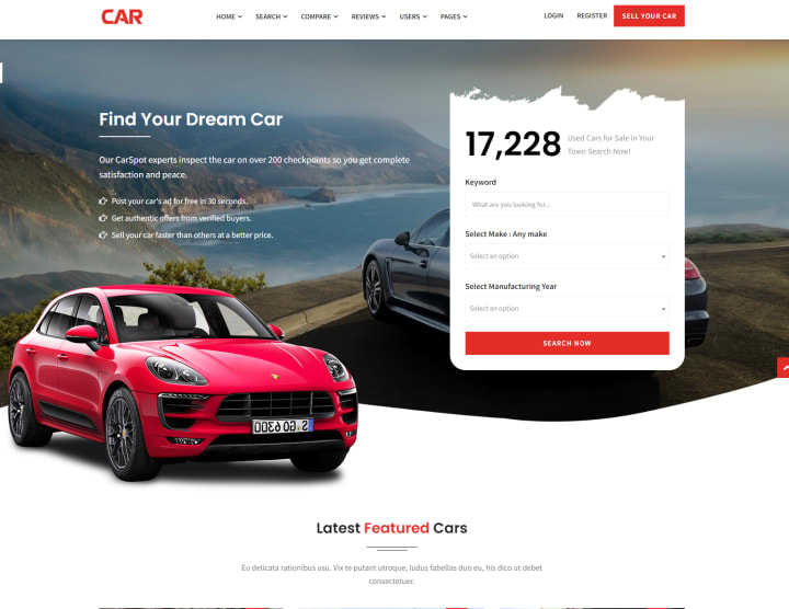 CarSpot is a feature-rich and visually appealing WordPress theme specifically designed for car dealerships and automotive classifieds. It offers a modern and intuitive interface, along with a range of customization options. CarSpot includes features like advanced search filters, vehicle comparison, and a finance calculator, making it a comprehensive solution for your used car dealership website. It also integrates with popular plugins like WooCommerce and Elementor, providing additional functionality and design options.