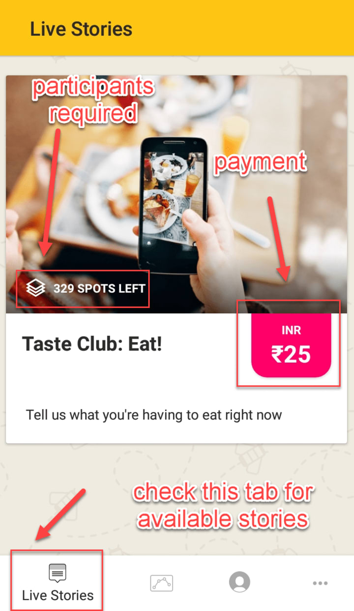 Once inside the app, look for a tab called "Live Stories". This is where you will find tasks to complete.