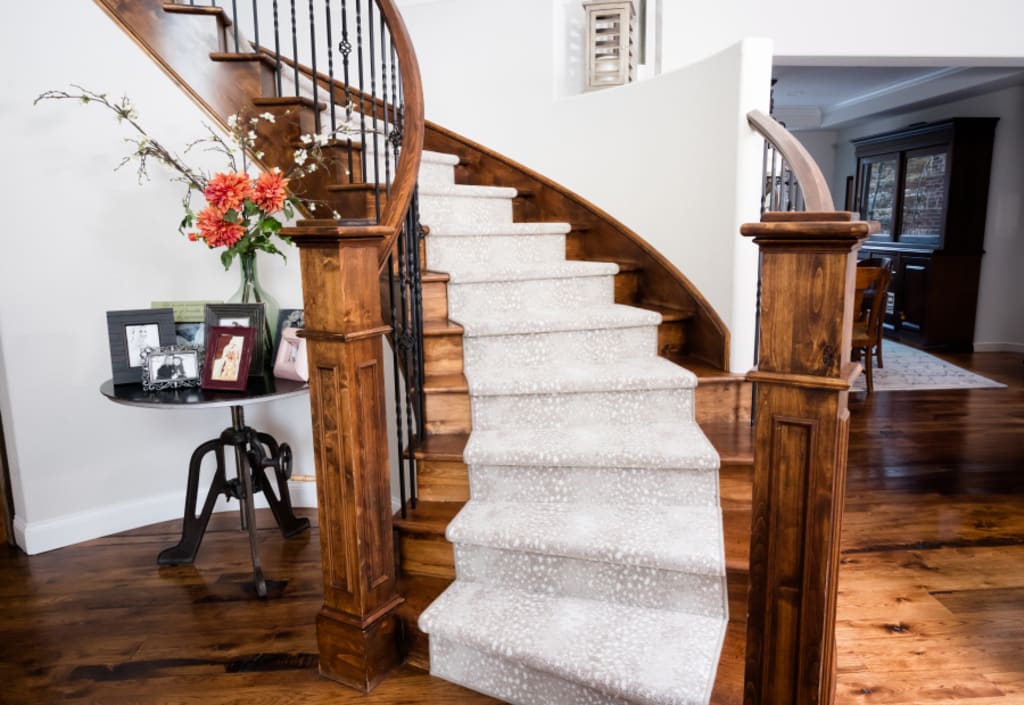 If your stairs are hardwood, carpeting can help preserve the wood underneath from dents, scratches, and wear patterns.