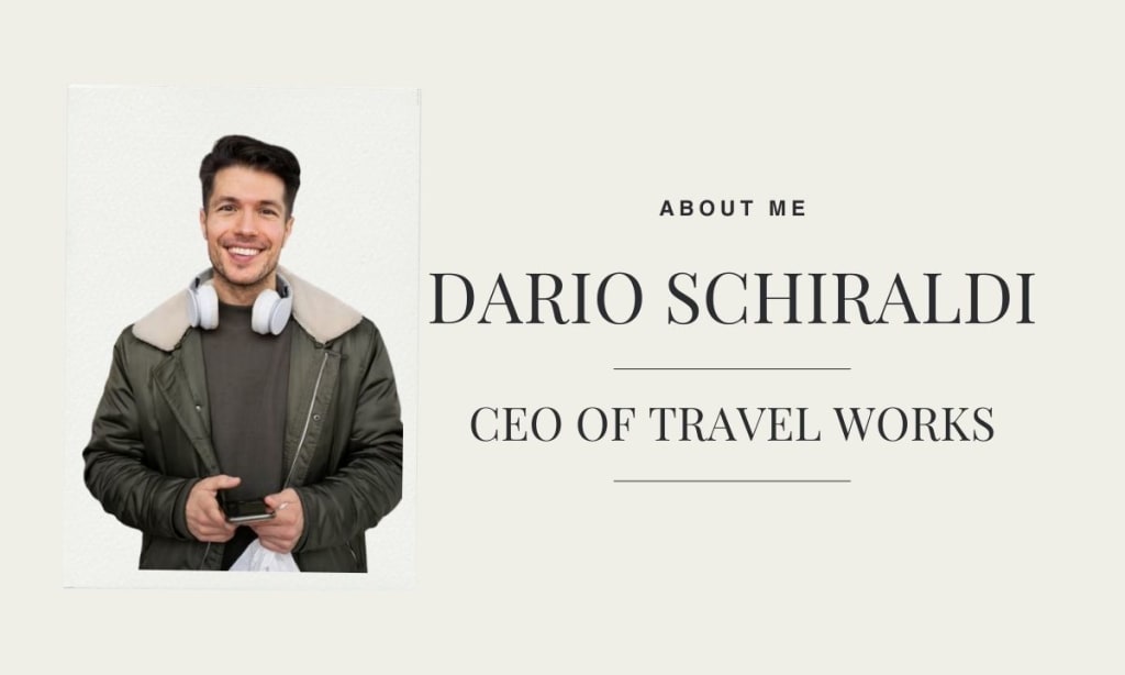 I’m Dario Schiraldi, the CEO of Travel Works. Born in Italy and now living and working in Dubai, UAE, I’ve always had a deep passion for exploration and the transformative power of travel.