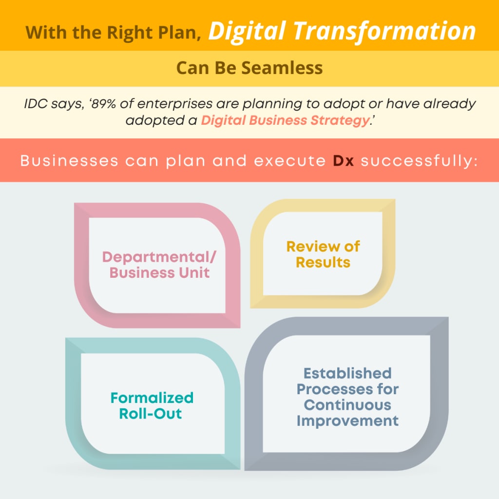 If your organization is among the many businesses adopting a digital strategy, your team is aware of the challenges and the planning required. If the enterprises wishes to succeed in its endeavor, it is crucial to understand the current environment, the business process and workflow and the technology landscape, and to include these considerations in the digital transformation (Dx) strategy.