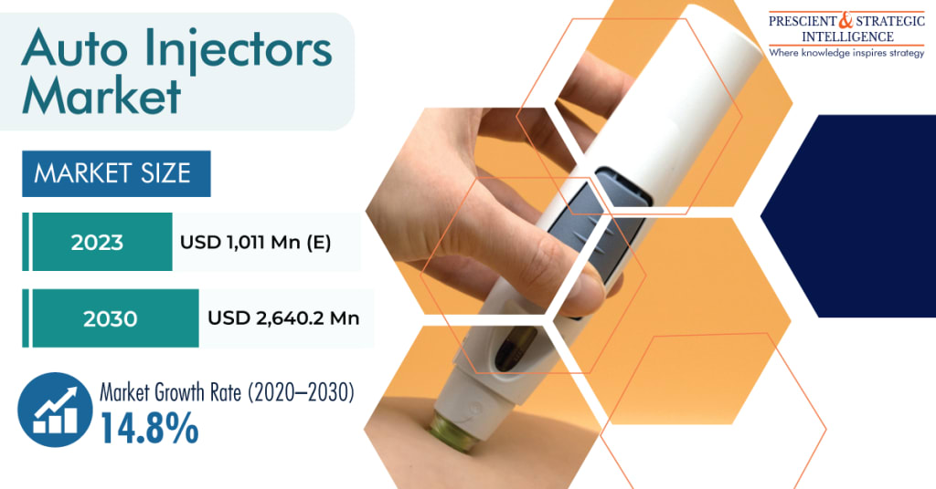 The auto injectors market has shown impressive growth, generating a revenue of USD 1,011 million in 2023. It is expected to continue its upward trajectory at a compound annual growth rate (CAGR) of 14.8%, reaching a projected value of USD 2,640.2 million by 2030. This expansion is driven by several key factors, including the increasing need for easy drug administration, the rising prevalence of chronic and lifestyle-related diseases, and advancements in healthcare technologies.